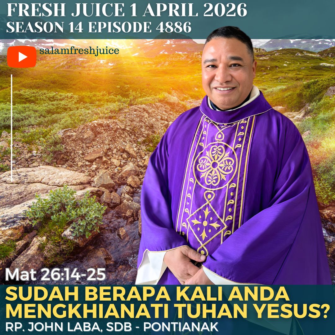 You are here: Home › Uncategorized › Fresh Juice 1 April 2026 – Mat 26:14-25 : Sudah berapa kali anda mengkhianati Tuhan Yesus? ← Fresh Juice 31 Maret 2026 – Yoh 13:21-33.36-38 : Bertahan terluka Fresh Juice 1 April 2026 – Mat 26:14-25 : Sudah berapa kali anda mengkhianati Tuhan Yesus? Podcast: Play in new window | Download (0.0KB) Pembawa Renungan : RP. John Laba, SDB Pontianak Mat 26:14-25.