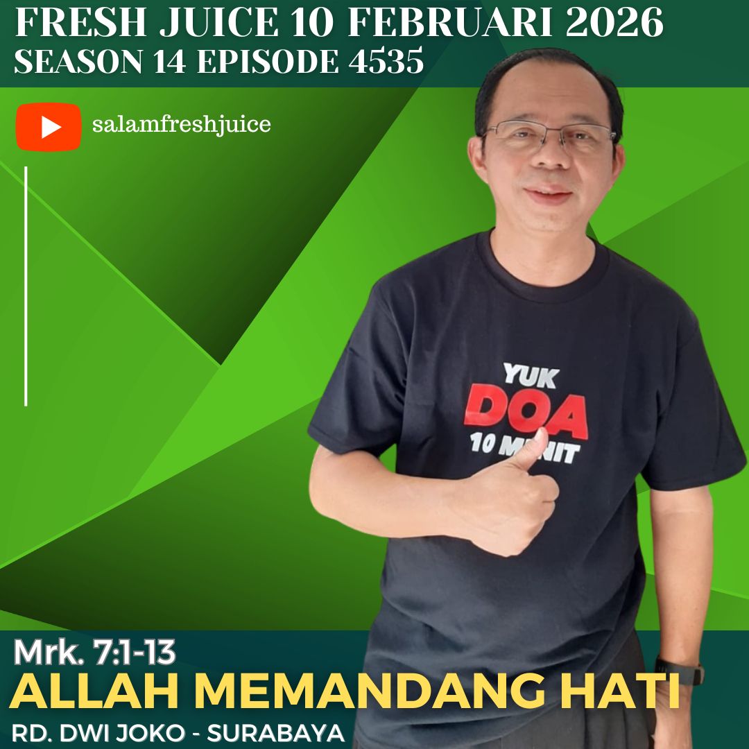 You are here: Home › Uncategorized › Fresh Juice 10 Februari 2026 – Mrk. 7:1-13 : Allah memandang Hati ← Fresh Juice 9 Februari 2026 – Mrk. 6:53-56 : Panggilan Sebagai Orang Kristen Fresh Juice 10 Februari 2026 – Mrk. 7:1-13 : Allah memandang Hati Podcast: Play in new window | Download (0.0KB) Pembawa Renungan : RD. Dwi Joko Surabaya Mrk. 7:1-13
