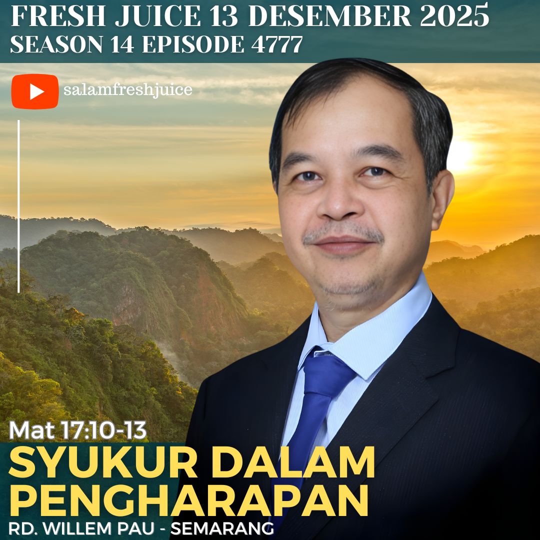 You are here: Home › Uncategorized › Fresh Juice 13 Desember 2025 – Mat 17:10-13 : Syukur dalam Pengharapan ← Fresh Juice 12 Desember 2025 – Mat 11:16-19 : Terlibat Dalam Rencana Tuhan Fresh Juice 13 Desember 2025 – Mat 17:10-13 : Syukur dalam Pengharapan Podcast: Play in new window | Download (0.0KB) Pembawa Renungan : RD. Willem Pau Semarang Mat 17:10-13