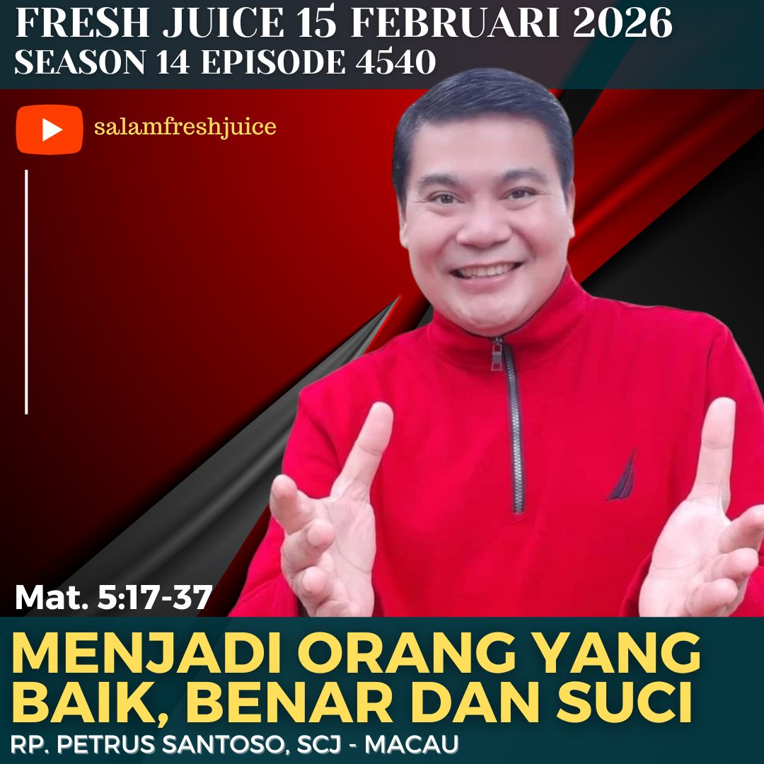 You are here: Home › Uncategorized › Fresh Juice 15 Februari 2026 – Mat. 5:17-37 : Menjadi Orang yang Baik, Benar dan Suci ← Fresh Juice 14 Februari 2026 – Mrk. 8:1-10 : Bahasa Lambang Fresh Juice 15 Februari 2026 – Mat. 5:17-37 : Menjadi Orang yang Baik, Benar dan Suci Podcast: Play in new window | Download (0.0KB) Pembawa Renungan : RP. Petrus Santoso, SCJ Macau Mat. 5:17-37