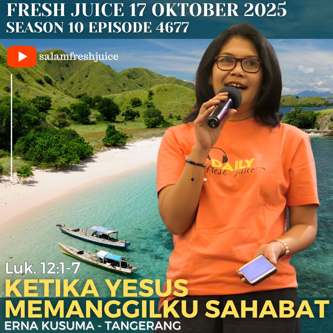 You are here: Home › Uncategorized › Fresh Juice 17 Oktober 2025 – Luk. 12:1-7 : Ketika Yesus Memanggilku Sahabat ← Fresh Juice 16 Oktober 2025 – Luk. 11:47-54 : Dinilai Oleh Orang Lain Fresh Juice 18 Oktober 2025 – Luk 10:1-9 : Fokus pada Tujuan Perutusanmu → Fresh Juice 17 Oktober 2025 – Luk. 12:1-7 : Ketika Yesus Memanggilku Sahabat Podcast: Play in new window | Download (0.0KB) Pembawa Renungan : Erna Kusuma Tangerang Luk. 12:1-7;