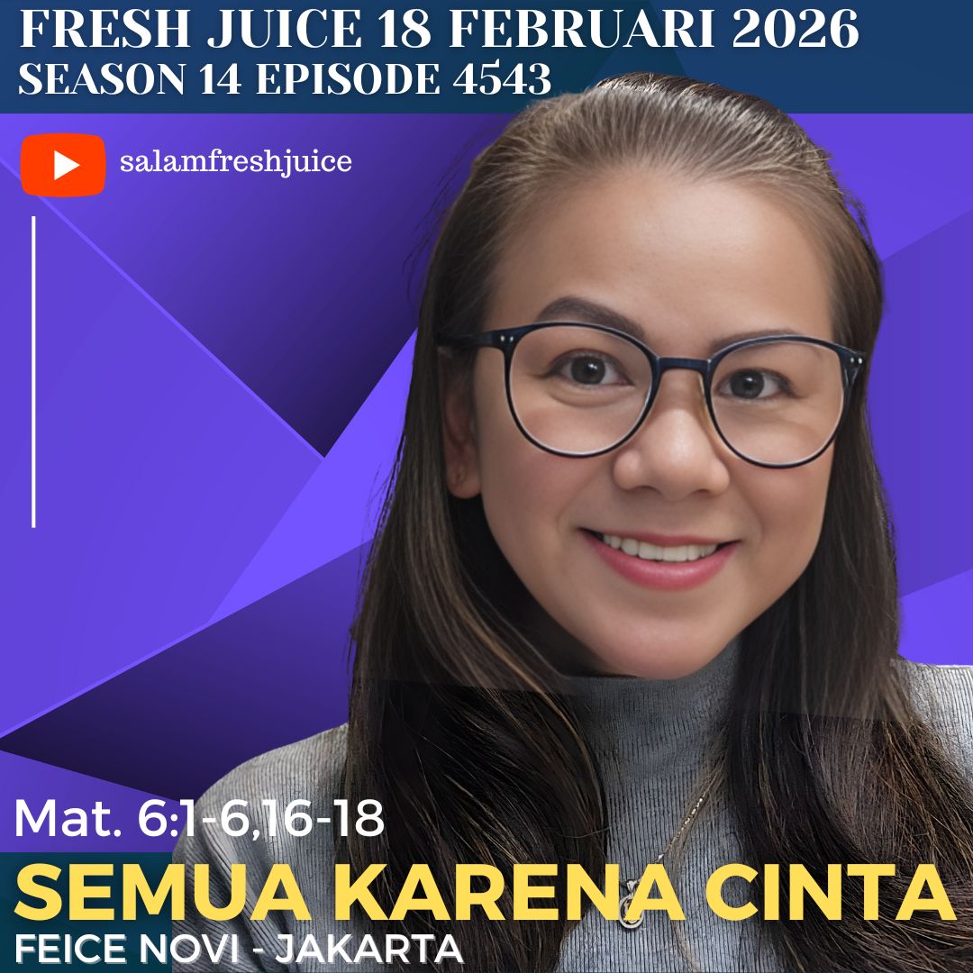 You are here: Home › Uncategorized › Fresh Juice 18 Februari 2026 – Mat. 6:1-6,16-18 : Semua karena Cinta ← Fresh Juice 17 Februari 2026 – Mrk. 8:14-21 : Ragi dalam Keluarga Fresh Juice 18 Februari 2026 – Mat. 6:1-6,16-18 : Semua karena Cinta Podcast: Play in new window | Download (0.0KB) Pembawa Renungan : Feice Novi JakartaHARI RABU ABU Mat. 6:1-6,16-18