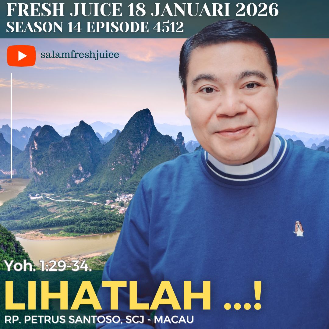 You are here: Home › Uncategorized › Fresh Juice 18 Januari 2026 – Yoh. 1:29-34 : Lihatlah …! ← Fresh Juice 17 Januari 2026 – Mrk. 2:13-17 : Dipanggil Karena Dibutuhkan Fresh Juice 19 Januari 2026 – Mrk. 2:18-22 : Mengapa Berpuasa? Mengapa Tidak Berpuasa? → Fresh Juice 18 Januari 2026 – Yoh. 1:29-34 : Lihatlah …! Podcast: Play in new window | Download (0.0KB) Pembawa Renungan : RP. Petrus Santoso, SCJ Macau Yoh. 1:29-34.