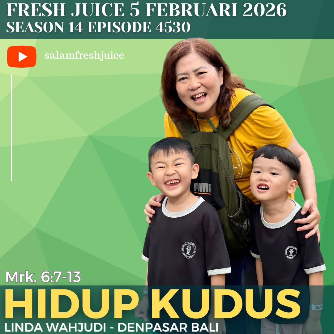 You are here: Home › Uncategorized › Fresh Juice 5 Februari 2026 – Mrk. 6:7-13 : Hidup Kudus ← Fresh Juice 4 Februari 2026 – Mrk. 6:1-6 : Pengalaman kecewa dan menolak Yesus Fresh Juice 5 Februari 2026 – Mrk. 6:7-13 : Hidup Kudus Podcast: Play in new window | Download (0.0KB) Pembawa Renungan : Linda Wahjudi Denpasar Bali Mrk. 6:7-13
